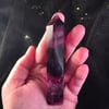 Fluorite promotes focus, intuition and understanding. It helps to bring chaos into order, promoting stability, free thinking and clear unbiased reasoning. This piece is a gorgeous dark cranberry. It is 4 inches tall and weighs 3.6 ounces. IT is the smallest crystal in the picture of 3.