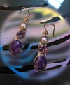 Sterling silver earrings with exquisite stones. Pearls bring lunar energy, love and beauty. Amethyst awakens psychic insight and brings clarity to the mind. Lepidolite brings peace and harmony, dispelling despair and uplifting the emotions.